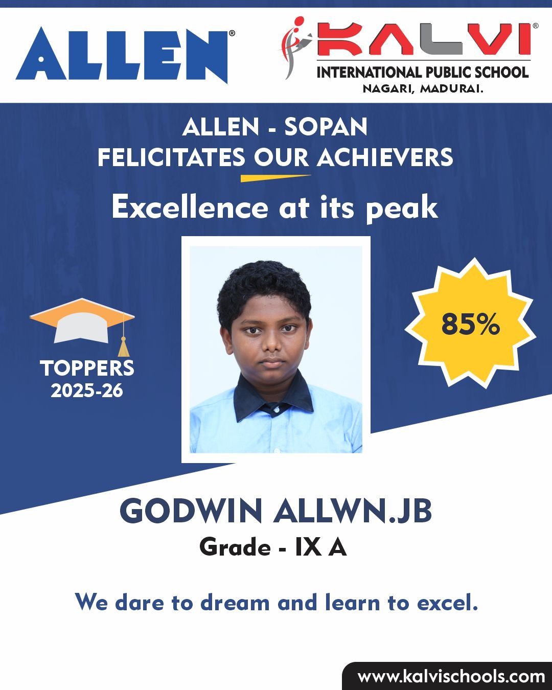 ALLEN SOPAN FELICIATES OUR ACHIEVERS - Excellence at its peak