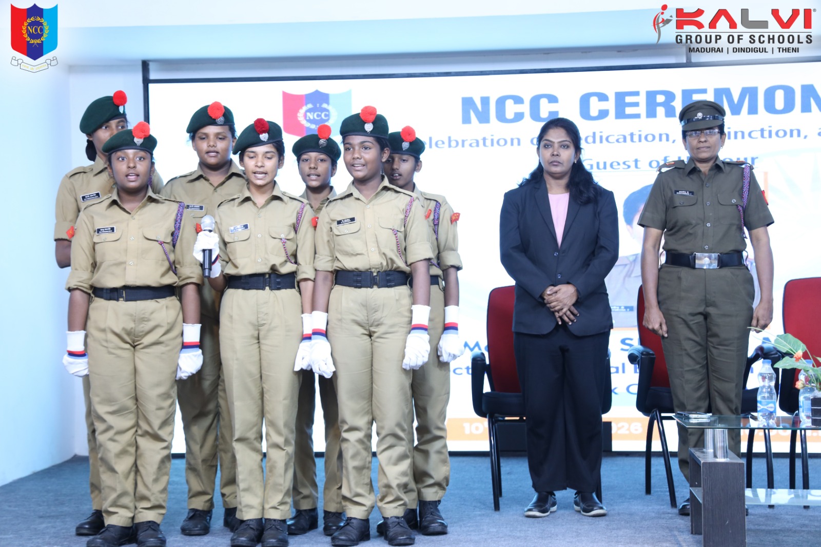 The Chief Guest Major Dr.T.Shantha Meena specially acknowledged the promoted cadets and awardees, noting the consistent efforts and exemplary benchmark set by the school. Emphasising the role of NCC in shaping confident and responsible youth, the address encouraged cadets to carry forward these values into their academic and personal lives.
